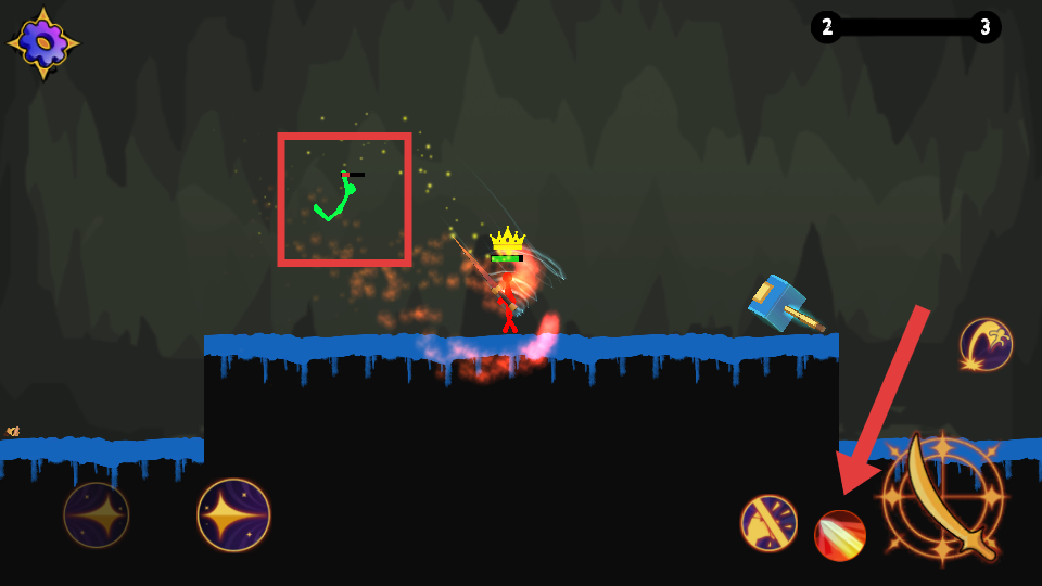 2、通过左侧的【左右按钮】进行移动,右侧的攻击和特殊技能按钮对敌人发起攻击,灵活运用技能和攻击组合,消灭敌人。