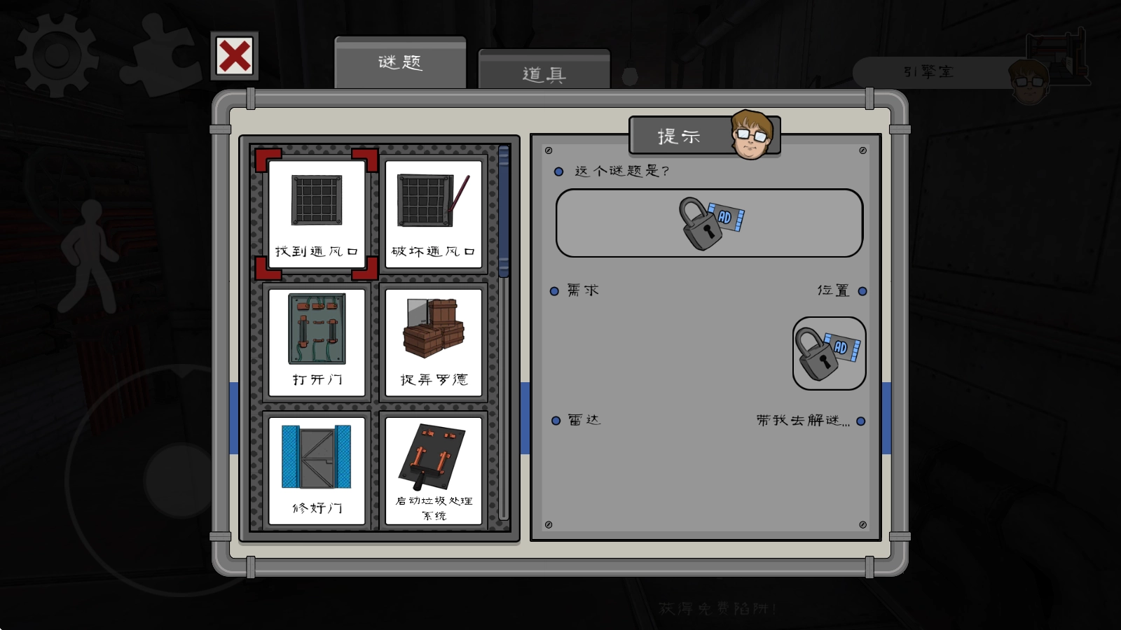 当你毫无头绪时,不妨点击左上角的拼图,那里会为你提供一些线索。