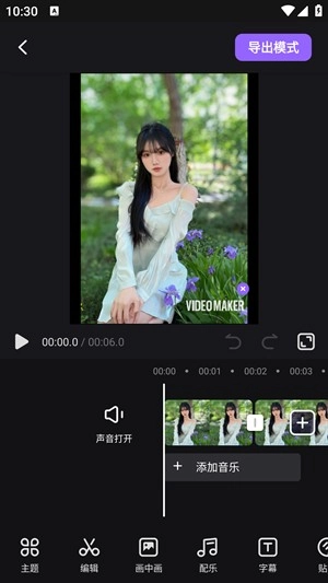 在视频美化页面的下方挑选一个合适的【主题】并添加,如此一来,融合了片头片尾、转场、配乐等功能的完美假期视频大片就能直接生成了。