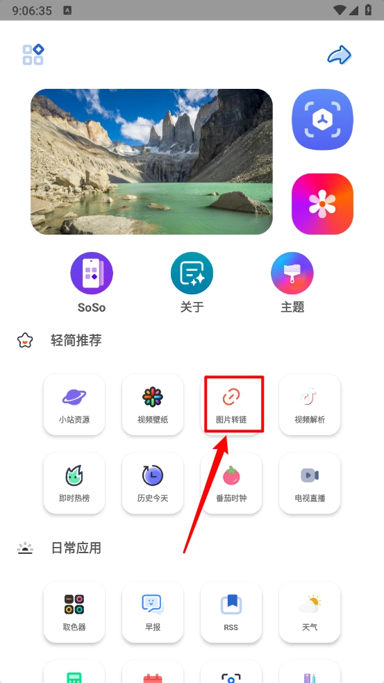 进入主页点击"图片转链",如图。