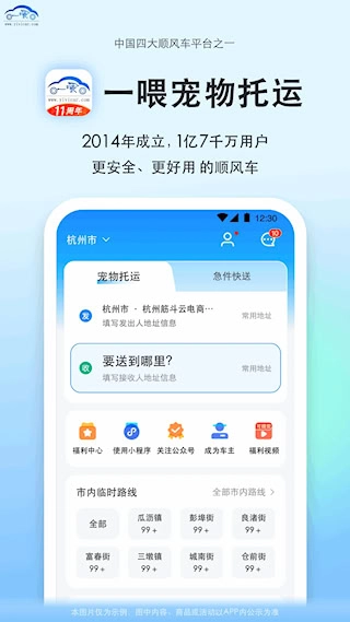 一喂宠物托运是一款专业的网约车应用,凭借顺风车与专人专车的服务模式,为用户提供高效且可靠的点对点运送服务,服务范围广泛涵盖宠物托运、日常物品递送、紧急文件传输以及各类同城跑腿需求。该应用不仅支持宠物猫狗等活体托运,还将服务扩展至生鲜、鲜花、药品、文件、数码产品、日常外卖等多品类配送领域。