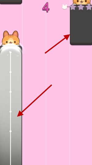 3、玩家需要长按左侧这样长条的钢琴块,点击右侧的短钢琴块。