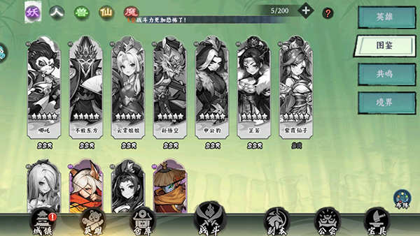 里面的英雄分为妖、人、兽、仙、魔每个种族都有各自的特殊属性和特殊技能,合理的搭配不同的英雄,在应对敌方不同阵容的时候,能够发挥出更多的优势。