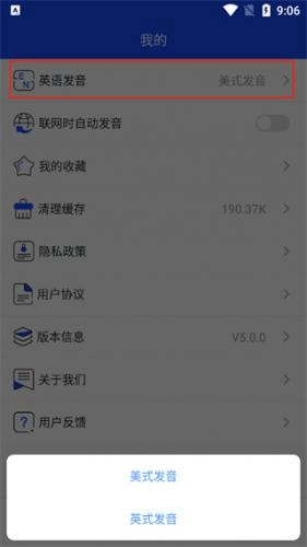 6、另外,点击我的,用户还可以根据需求切换中式发音和美式发音;
