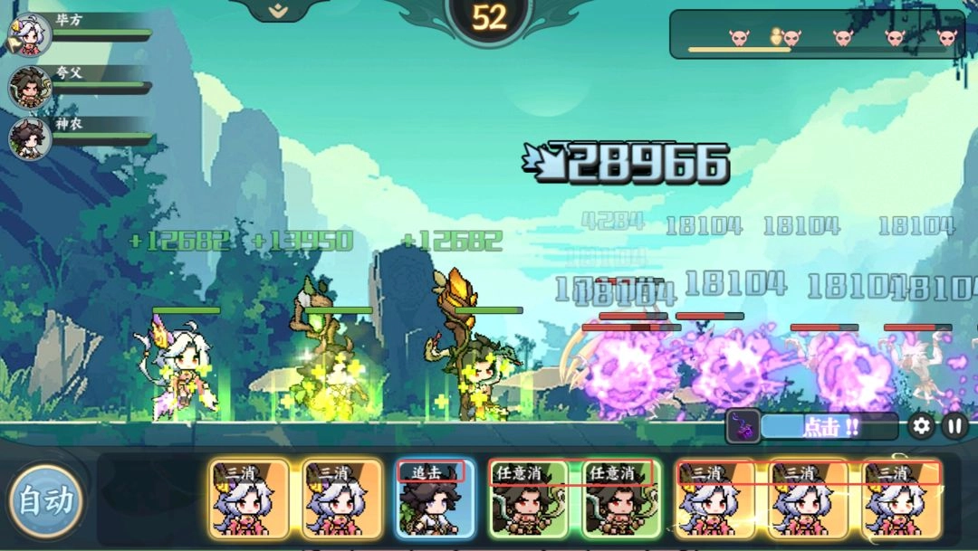 大家只需根据消除类型合理搭配组合,进入战斗后开启自动战斗,接着欣赏畅快的战斗过程就好啦!