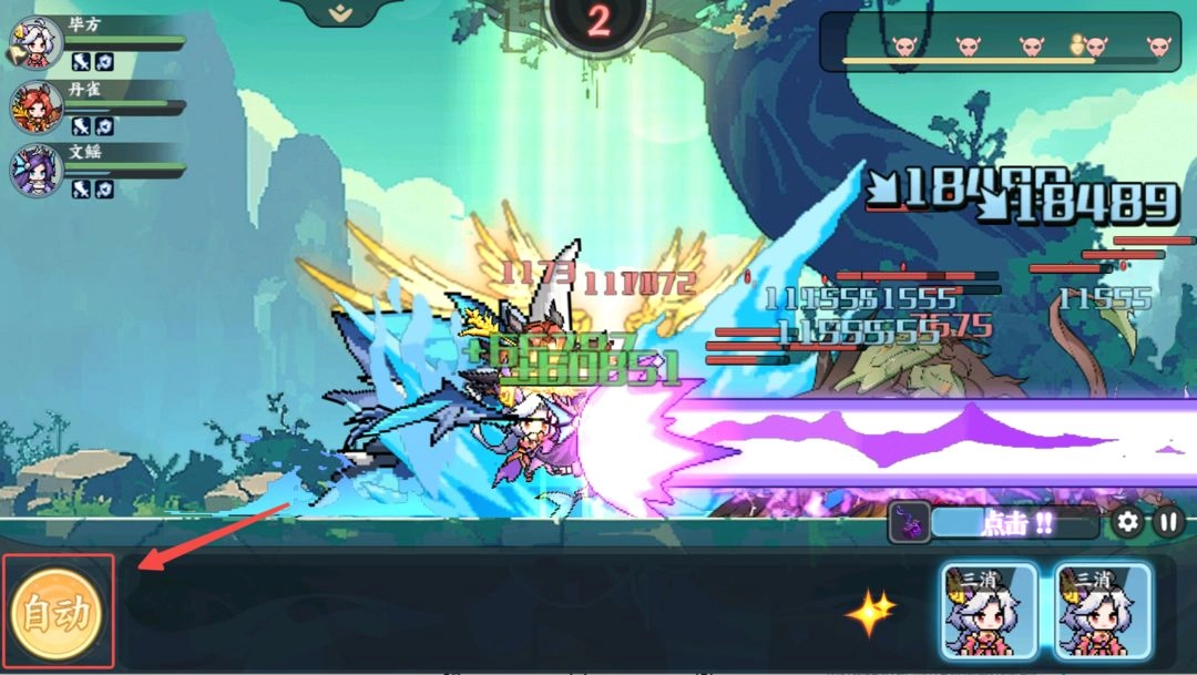 不过不用担心,游戏初期就配备了自动战斗功能,它会依照“凑三消”的规则自动消块,足以应对绝大多数战斗。
