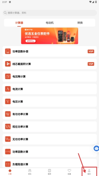 打开电工大师应用,点击底部导航栏的“我的”选项,即可进入个人中心页面。