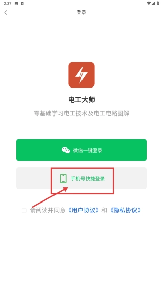 在个人中心,点击电工大师登录区域,即可进入登录方式选择页面。