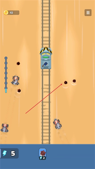 在火车上操控武器,攻击轨道旁的敌人,消灭目标积累金币,以此推进关卡。