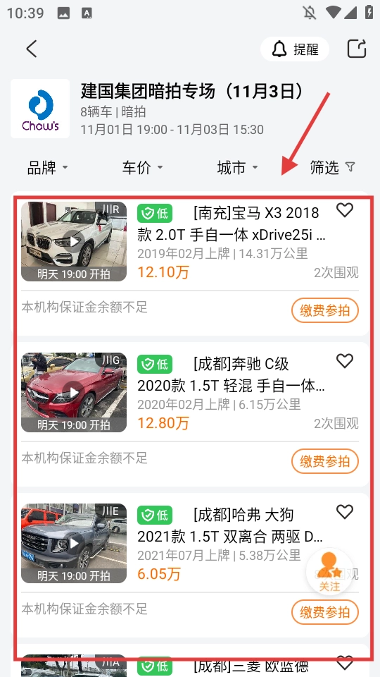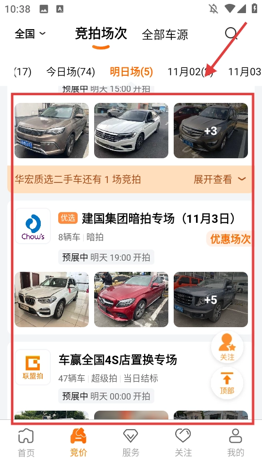 在竞拍场次页面,选择目标专场。