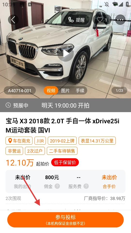 点击底部【竞价】,进入竞拍场次页面。