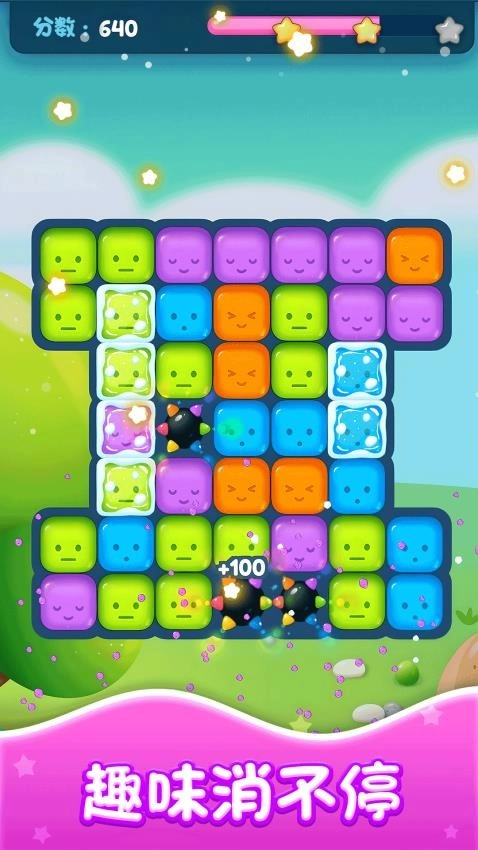 视觉呈现绚烂耀眼,果冻方块撞击瞬间飞溅的粒子特效和动态光影,让每一次消除都带来震撼的视听体验。