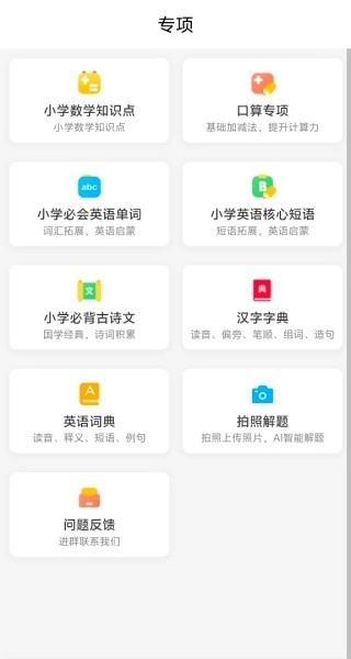 趣味刷题提供每日一练、专项训练、错题重做等多种练习模式,涵盖口算、单词、古诗等专项内容,通过游戏化学习方式让练习告别枯燥。