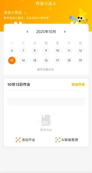 打开作业小达人App,进入日期管理界面,依据日期添加小朋友的作业情况。