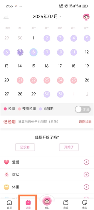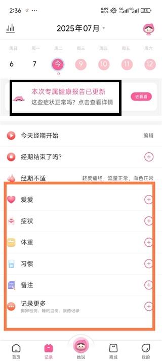怎么记录姨妈期和查看健康报告?