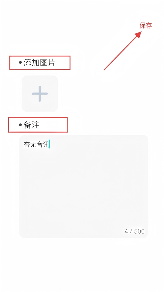 在添加页面中,您可以选择添加图片并填写备注信息,操作完成后点击【保存】按钮即可。
