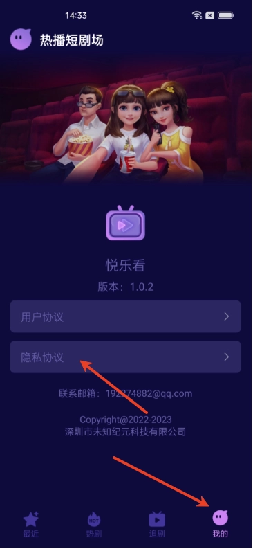 点击“我的”→“设置”,查看相关协议。