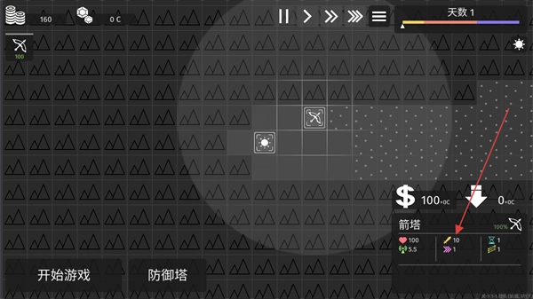 点击建筑物即可查看其相关信息,例如箭塔的攻击力为10点伤害。