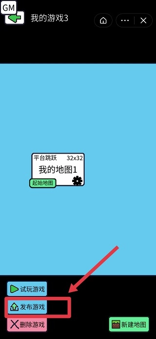 制作游戏,做完游戏后,选择“发布游戏”。