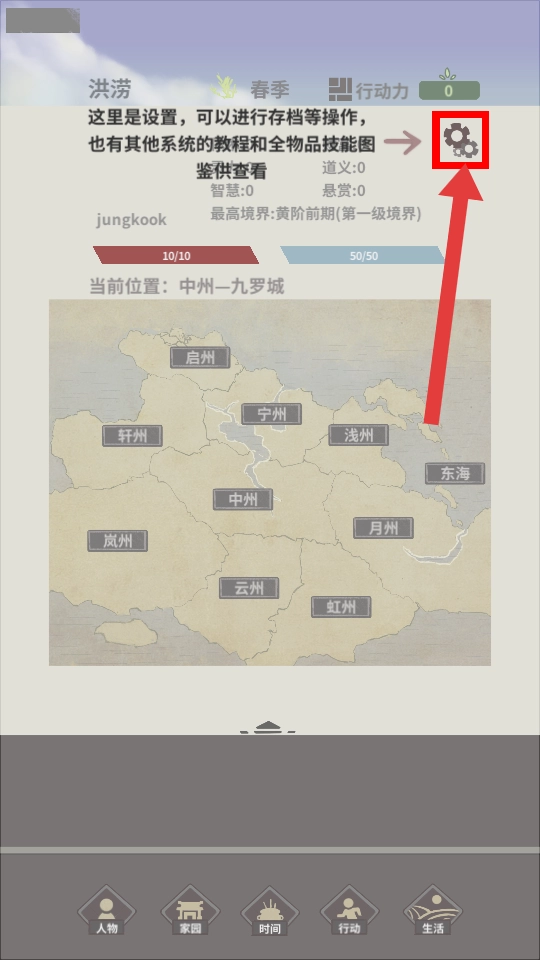 点击设置按钮,玩家能够开展存档、浏览系统教程以及查阅物品技能图鉴等操作,设置功能为游戏进程的管理与玩法的理解带来了便利。