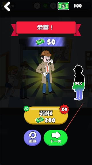 通关后能得到金币奖励,点击下一关接着挑战,持续解锁新关卡。