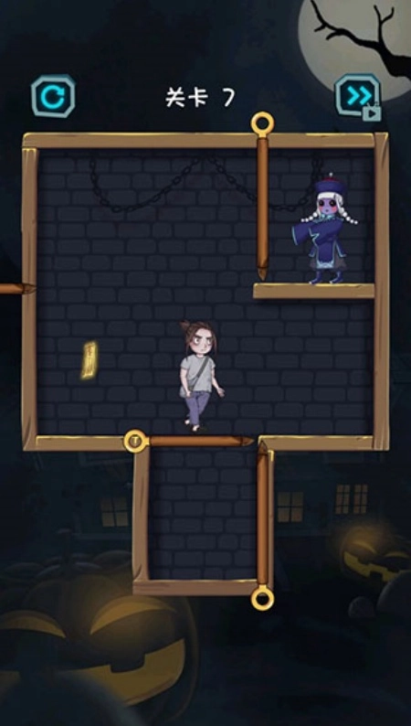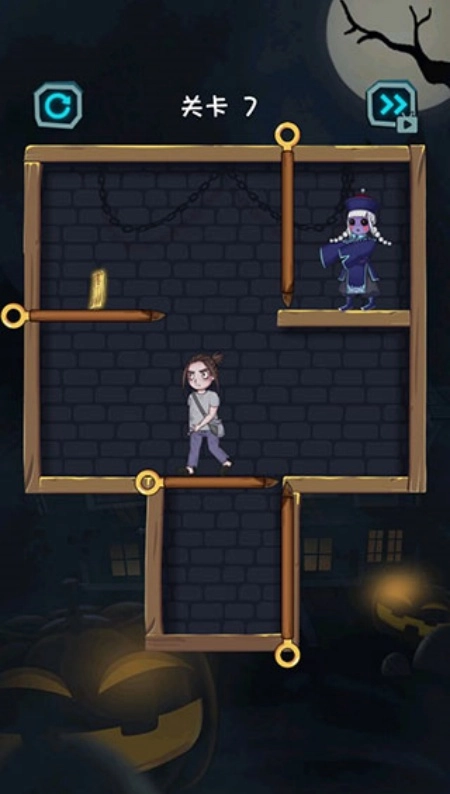 拿到道具后,就能把僵尸下方的棍子移开,将他收服了。