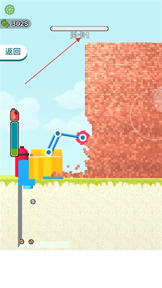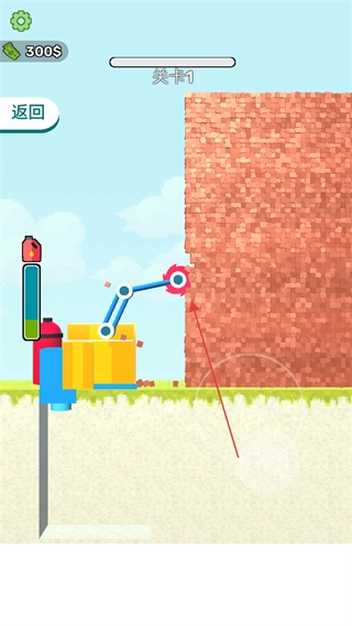 持续操控机械臂进行拆墙操作,收集掉落的金币等各类奖励,在限定时间内尽可能拆除更多砖墙,以达成关卡设定的目标。
