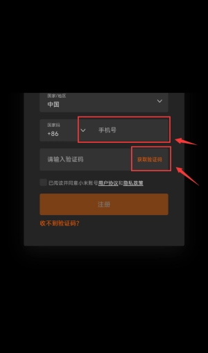 输入手机号获取验证码,勾选协议后点击注册按钮。