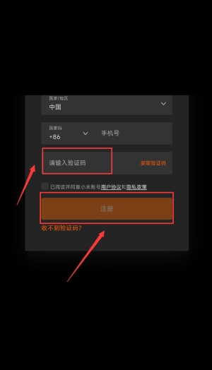 请填写您收到的短信验证码,随后点击橙色的注册按钮,即可完成账号的创建。