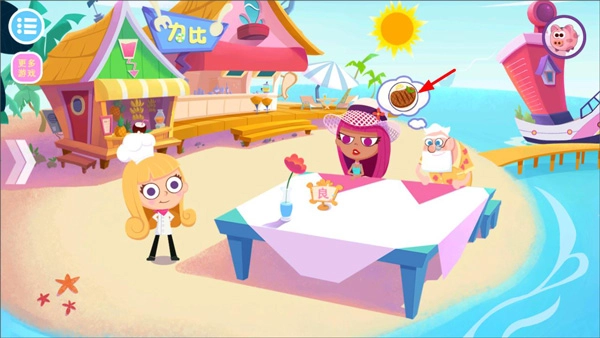 玩家启动美食兄妹海岛餐厅游戏,选定角色后引导客人入座,接着点击客人提出的需求