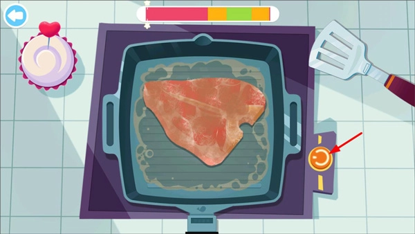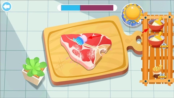 然后点击右侧的调料对牛排进行腌制;