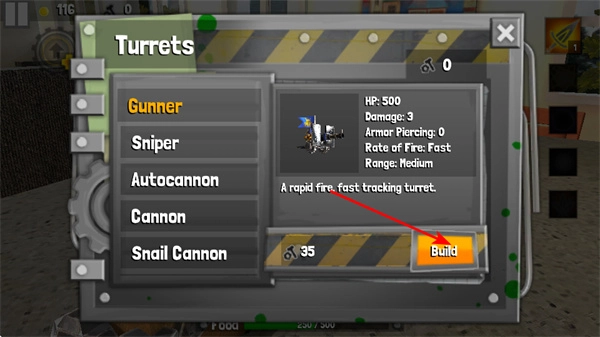 在炮塔界面选择炮手类型,点击建造按钮完成建造,借助其快速追踪的特性来提升防御能力。