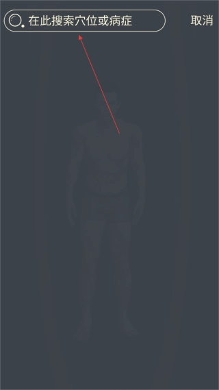 在软件界面点击左上角的搜索图标,进入搜索界面后,即可开始搜索穴位或病症。