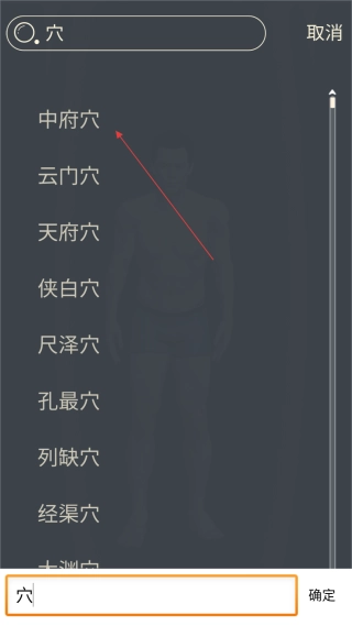 在搜索结果里,点击【目标穴位】,就能进入该穴位的展示界面。