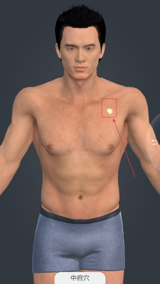 在中府穴的展示界面,就能查看该穴位在人体模型上的具体位置,从而完成穴位查找操作。