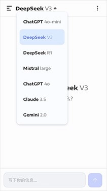 点击顶部DeepSeekV3右侧的三角按钮就能切换接口。