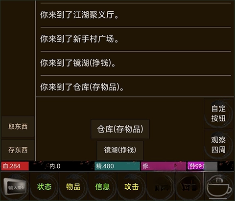 记得要勤存物品哦,新手广场直走就能到仓库,这样可以防止意外死亡时丢失喜欢的装备。
