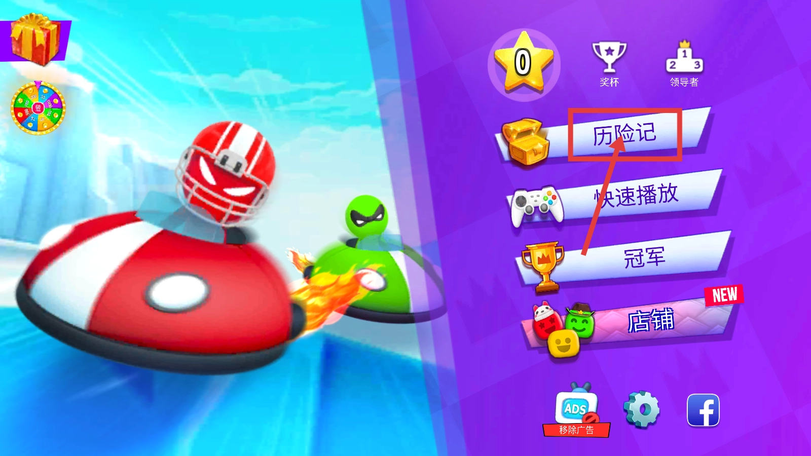 在主界面找到并点击【历险记】选项,即可进入对应的游戏模式,开启一场充满乐趣的碰碰车冒险之旅,尽情体验趣味十足的对战玩法。