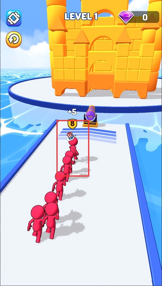 通过滑动屏幕来操控大炮的移动方向,行进途中要留意避开各类障碍物,并且收集四处散落的增益道具,以此来扩大队伍的规模。