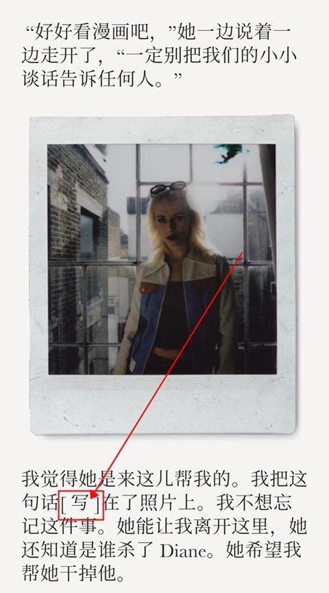 拍照后,点击“写”,继续剧情。