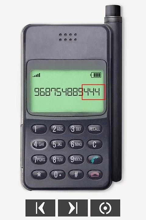 找到手机后,输入密码8961解锁设备(通过左右箭头按钮调整按键的左右位置,第三个按钮是确认键。RECALL为回拨功能,C键用于删除,绿色按钮是拨打键,红色按钮是挂断键)。
