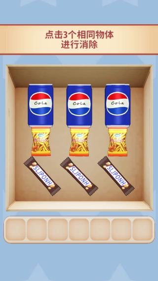 关卡中点击3个相同的物体,就能快速去消除。
