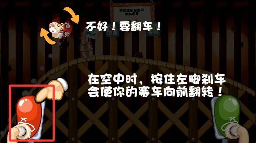 飞跃坡道时要及时按住刹车来稳定车身,防止在空中翻转失控,只有保持好平衡,才能平稳落地。
