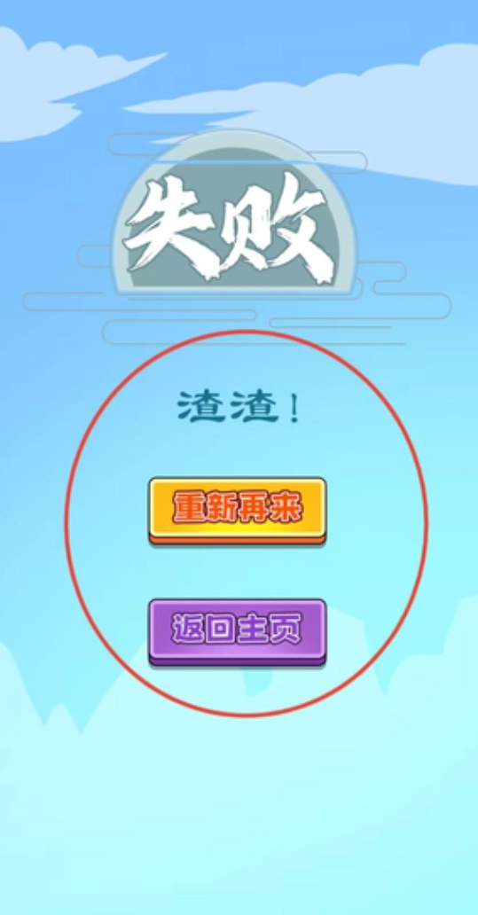 若批改出现错误,即判定为失败,此时可选择重新挑战当前关卡,或者退出返回主界面重新挑选其他模式。
