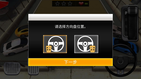 从左至右依次排列着刹车、油门与方向盘,左上方设有视角切换功能,右上方则是档位调节区域。你可依据自身操作习惯,灵活调整车辆在倒车入库过程中的位置,同时需精准把控行驶方向,避免发生碰撞,最终将车辆以最优姿态停入车库内。