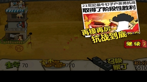 《钉子户大战拆迁队》这款曾风靡一时的经典策略塔防小游戏,想必不少朋友都有过游玩经历,如今它已成功移植到手机平台。游戏里,玩家需消耗资金召唤家丁,指挥他们抵御拆迁队的进攻,以此守护自己的房屋与宅基地。尽管玩法上与《植物大战僵尸》有相似之处,但整体风格却截然不同。