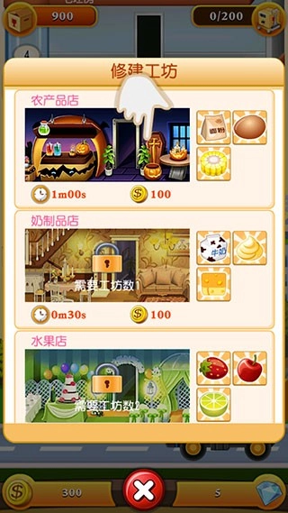 在工坊列表页面,我们能看到目前仅解锁了农产品店,现在点击它来进行建造。