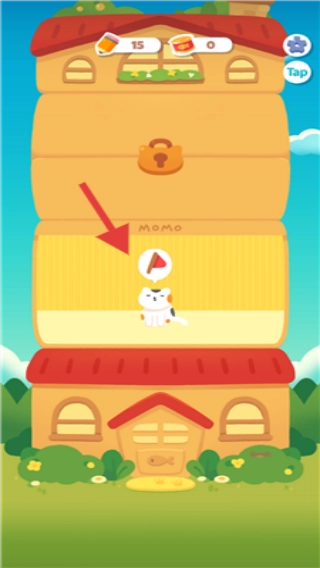 在游戏场景里,按照箭头指示留意猫咪所在的楼层,或许需要执行和该楼层有关的操作。