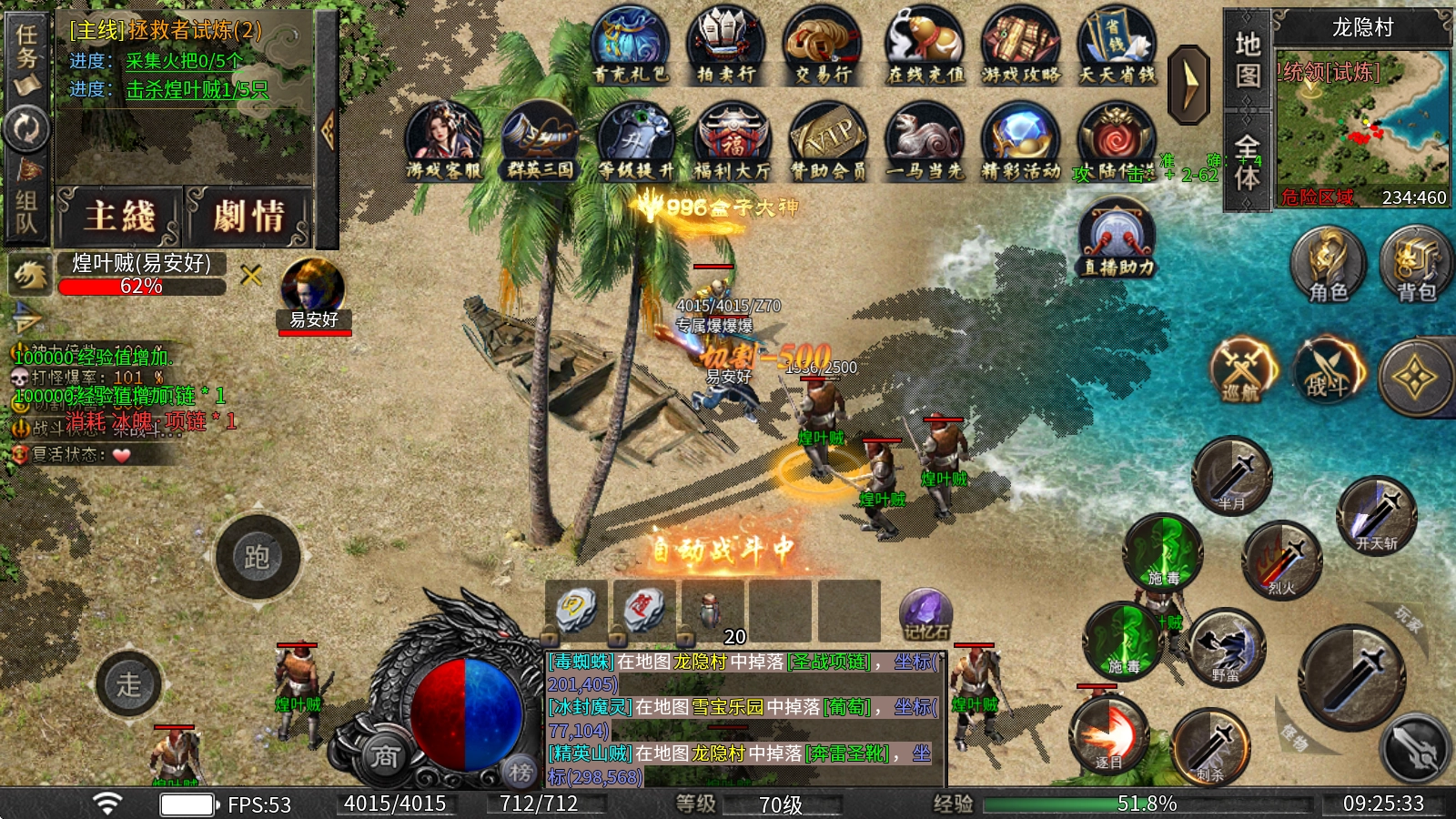 创新设计了爆率透视怪显功能,让所有怪物和BOSS携带的物品一目了然,砍怪刷宝更便捷,运气好就能爆出所有想要的东西。