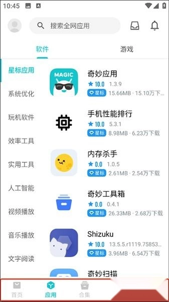 奇妙应用商店是一款实用性很强的工具,它就像一座桥梁,连接着手机用户和各类丰富资源,提供的软件资源质量颇高,涵盖电影、电视、小说、辅助工具以及其他PJ版游戏,能让你尽情体验最新版本。它不只是一个工具,更是全新的手机优质资源分享平台,让你轻松愉快地享受其中乐趣,始终致力于为用户提供便捷、高效的服务。